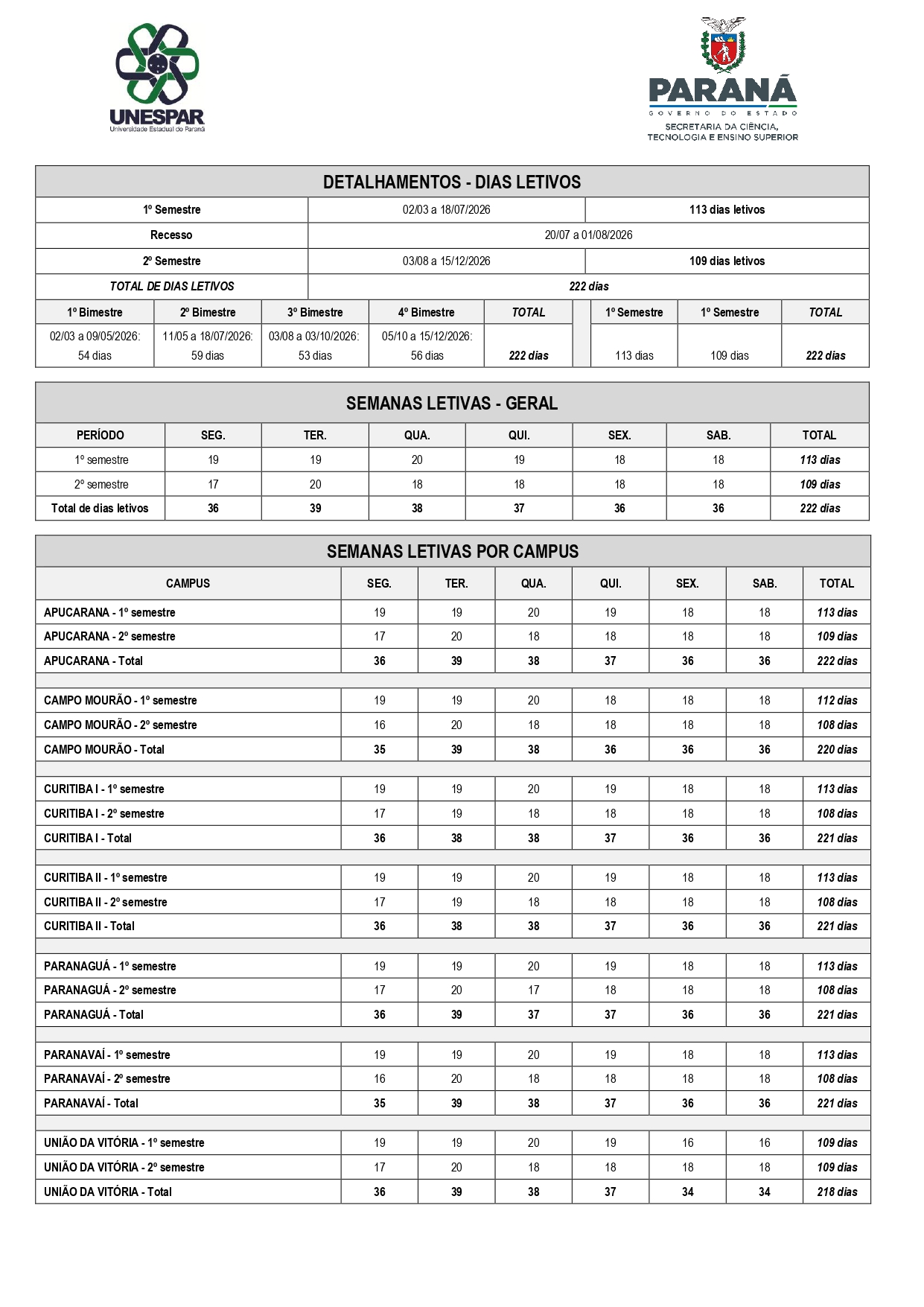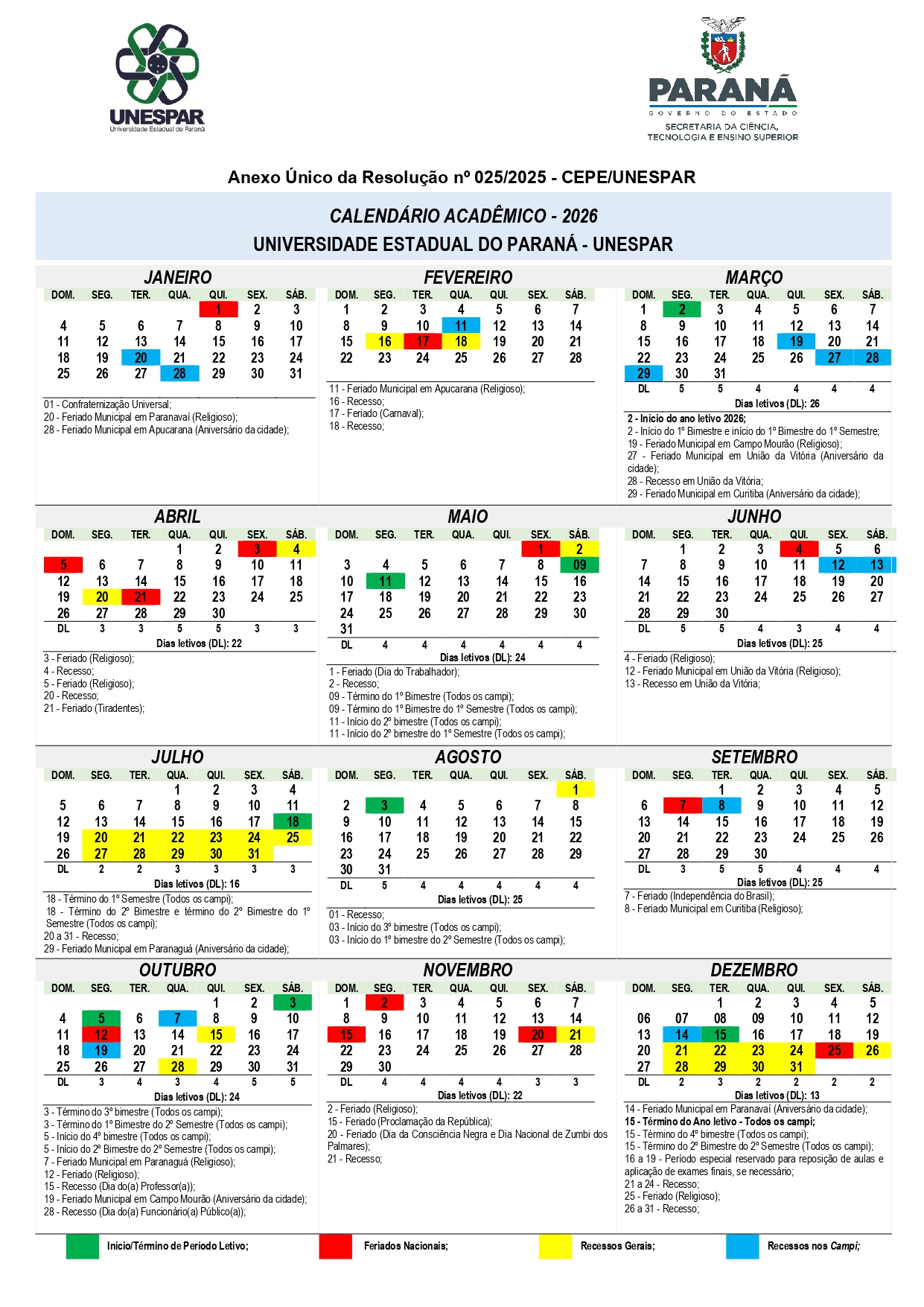 CALENDÁRIO ACADÊMICO 2026 EM PDF
