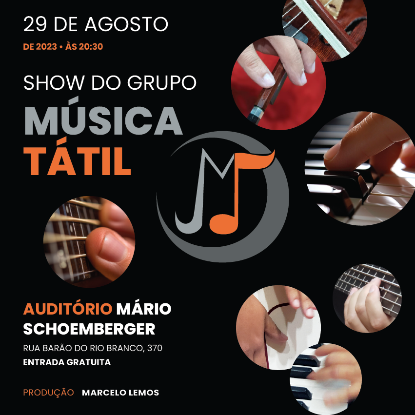 Grupo MÚSICA TÁTIL, nesta terça, 29/08/2023, às 20:30 horas.