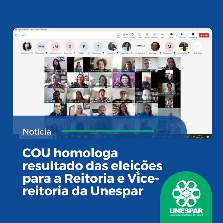 COU homologa resultado das eleições para a Reitoria e Vice-reitoria da Unespar.