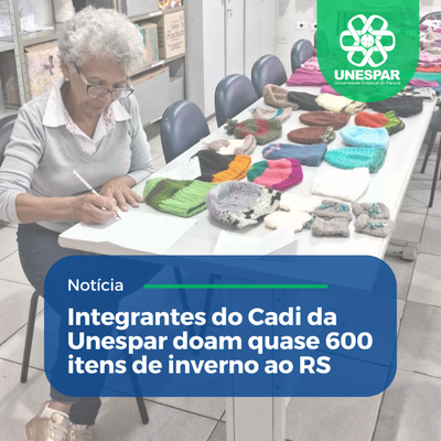 Contando com 39 mulheres de maioria idosa, o Cadi, criado em 2017 e ligado ao programa de extensão Unespar 60+, que traz pessoas idosas ao ambiente acadêmico para socializar, aprender e ter qualidade de vida, confecciona, anualmente, itens de inverno, como toucas, echarpes, cachecóis, mantas e luvas para doação. Os destinatários da ação são escolhidos pelas próprias componentes do Centro.