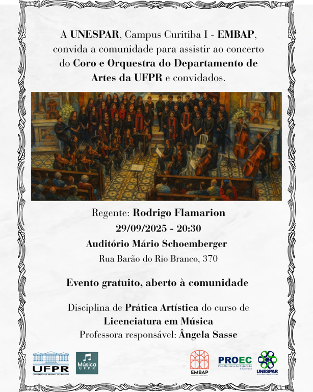 Concerto do Coro e Orquestra do Departamento de Artes da UFPR e convidados