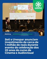 Seti e Unespar anunciam investimento de cerca de 1 milhão de reais durante evento de celebração dos 20 anos do curso de Cinema e Audiovisual