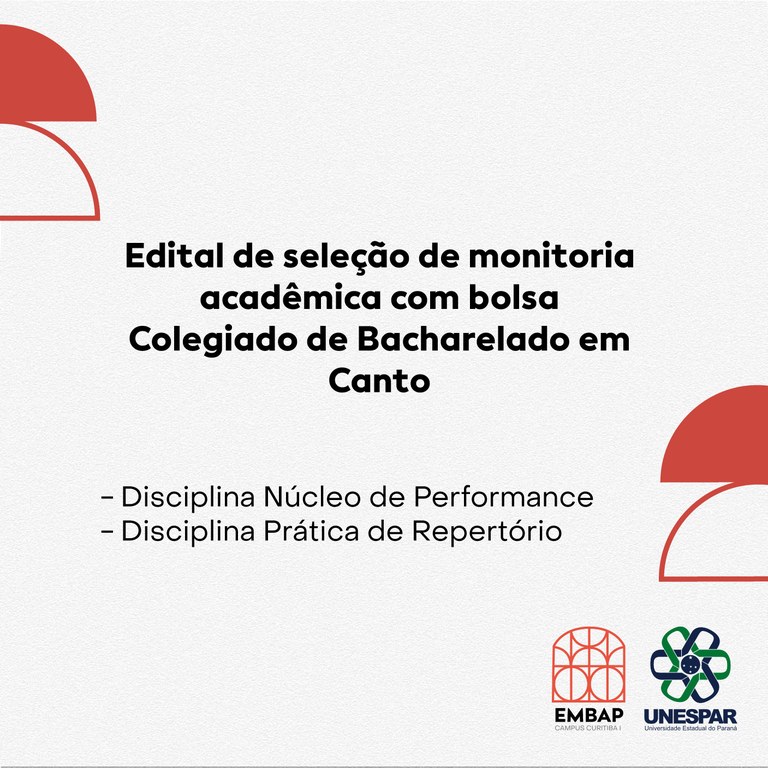 EDITAL DE SELEÇÃO DE MONITORIA ACADÊMICA COM BOLSA 2025 - BACHARELADO EM CANTO