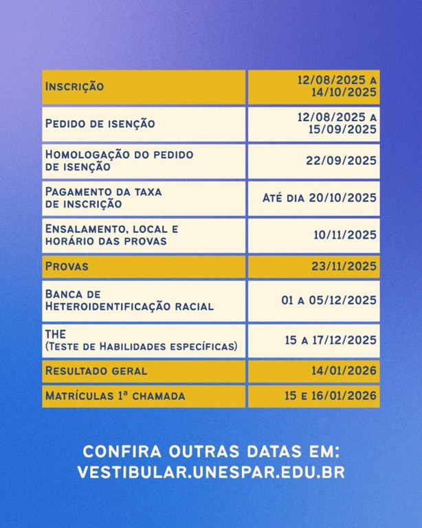 O Calendário do Vestibular Unespar 2026 já foi publicado!