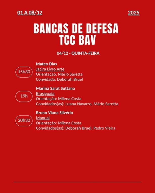Calendário das Bancas de Defesa de TCC 2025 - BAV