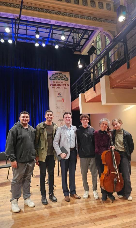 Orquestra de violoncelos da EMBAP/UNESPAR, marcando presença no Festival de Violoncelos de Curitiba