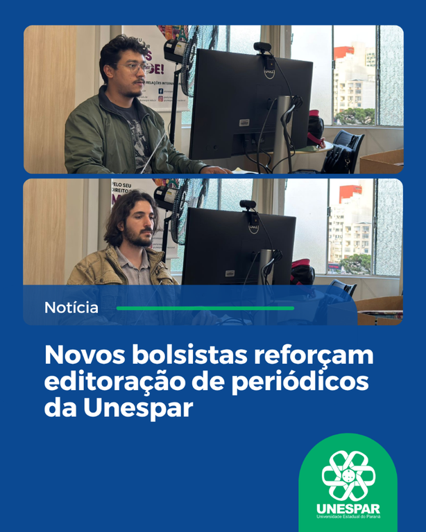 A Diretoria de Estratégias em Pesquisa da Pró-reitoria de Pesquisa e Pós-graduação (PRPPG) da Universidade Estadual do Paraná (Unespar) recebeu, neste mês, dois novos bolsistas técnicos para dar apoio à diagramação e à normatização dos periódicos científicos da instituição.