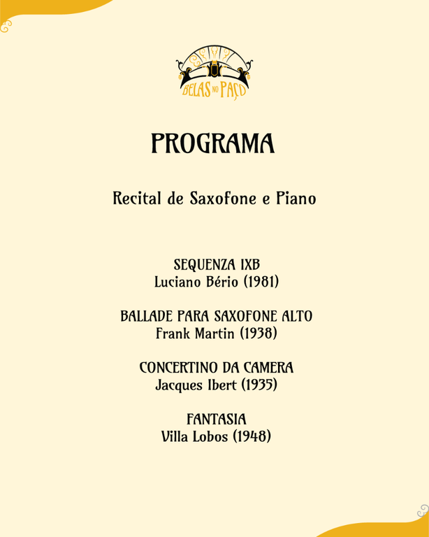 Belas no Paço - Recital de Saxofone e Piano