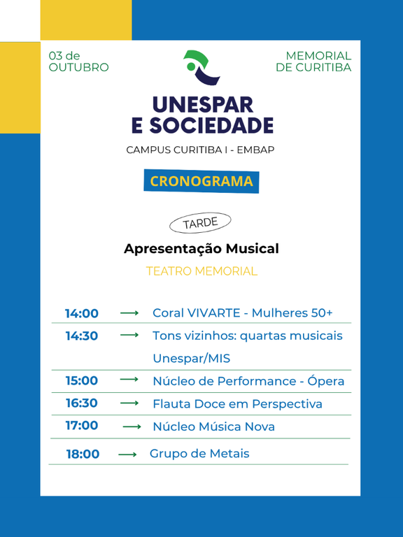 UNESPAR promove evento “UNESPAR e Sociedade” em Curitiba com programação artística e cultural