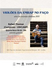 🎶 Violões da EMBAP no Paço apresenta o violonista Rafael Thomaz (Campinas – UNICAMP) em mais um concerto da série didática de 2025.