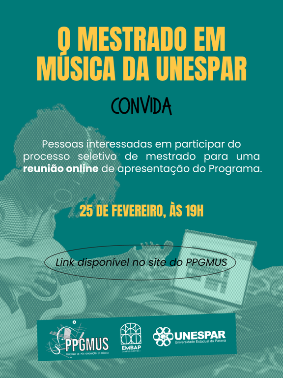 O PPGMUS da UNESPAR convida pessoas interessadas no processo seletivo para uma reunião online de apresentação do curso