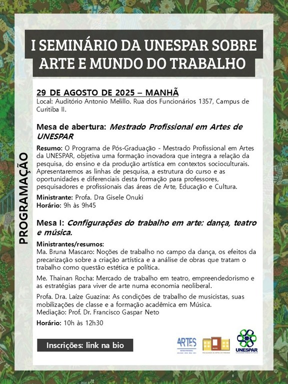 I Seminário sobre Arte e Mundo do Trabalho da UNESPAR