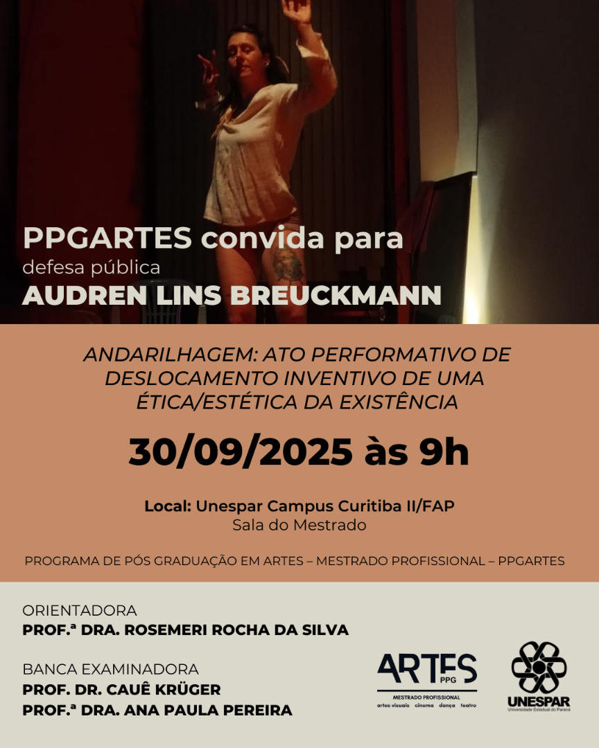 PPGArtes convida para Banca de Defesa Pública da discente Audren Lins Breuckmann