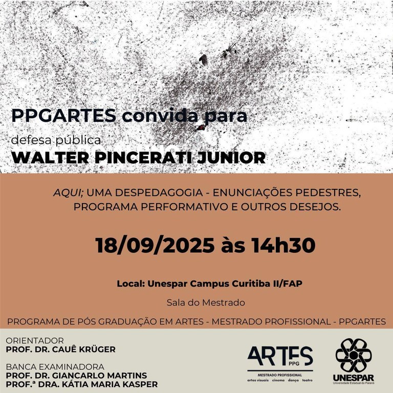 PPGArtes convida para Banca de Defesa Pública do discente Walter Pincerati Junior