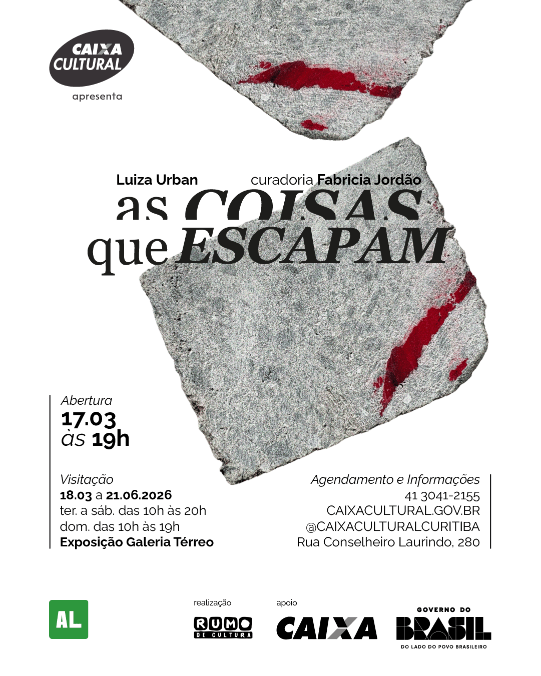 O Programa de Pós-Graduação em Artes Visuais da Universidade Estadual do Paraná (PPGAV/UNESPAR) convida para a exposição individual da aluna do PPGAV, Luiza Urban, resultado de sua pesquisa de mestrado. A exposição As Coisas que Escapam conta com curadoria de Fabricia Jordão, docente permanente do PPGAV. A abertura será no dia 17 de março, às 19h, na Galeria do 1º andar da CAIXA Cultural Curitiba.