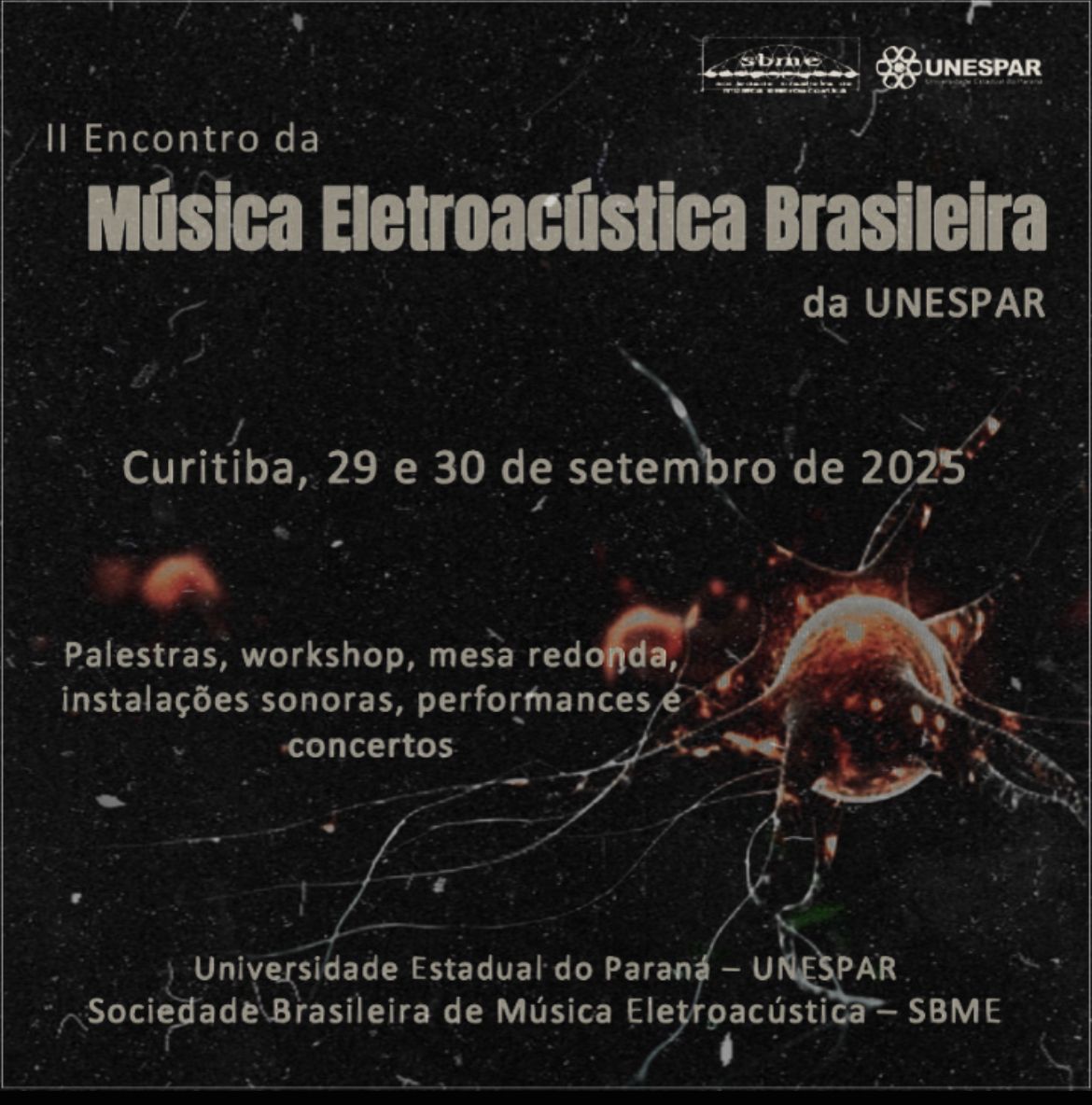 O Encontro da Música Eletroacústica Brasileira da UNESPAR (Universidade Estadual do Paraná), em sua segunda edição, é um evento que se consolida pela celebração da criação, do ensino e da pesquisa no campo da música eletroacústica promovendo, dentre outras atividades, apresentações de obras e discussões sobre o tema com fomento ao diálogo entre artistas, pesquisadores e estudantes, destacando a produção nacional e suas características. Em eco às atividades da primeira edição do evento, ocorrida no ano de 2023, o II EMEB é uma oportunidade para conhecer, apreciar e vivenciar obras inéditas e/ou históricas de diversos artistas brasileiros que exploram esse gênero musical. O II EMEB tem apoio da Sociedade Brasileira de Música Eletroacústica (SBME), além das apresentações musicais, o evento conta com mesas redondas, palestras e workshops, proporcionando um espaço de aprendizado e troca de experiências sobre o universo do gênero reunindo importantes nomes atuais deste meio. O fomento da UNESPAR tem sido fundamental para o desenvolvimento de eventos como este, essenciais para a difusão e valorização desta vertente, que cada vez mais se estabelece no Estado do Paraná, em especial na cidade de Curitiba, somando-se ao lastro eletroacústico brasileiro já reconhecido mundialmente. Os objetivos principais do evento são: - a divulgação da produção nacional por meio de concertos e mostra de obras brasileiras em que se destaca a riqueza e diversidade da música eletroacústica produzida no país; - a formação de público em que, ao promover a interação entre artistas, pesquisadores e demais interessados, o evento contribui para formar ouvintes conscientes da música eletroacústica, dos seus processos de criação e das suas possibilidades; e no mesmo ensejo, - o estímulo à pesquisa e criação pela oferta de um espaço para discussão e reflexão sobre este gênero musical estimulando a pesquisa, com novas abordagens acerca da temática, e a criação de novas obras. Os idealizadores, organizadores e responsáveis pelo encontro destacam a participação coletiva de congraçamento de estudantes, professores, compositores, artistas e a sociedade em geral, com suporte e infraestrutura dados pela UNESPAR e pela SBME, o que envolve o Programa de Pós-Graduação em Música (PPGMUS/UNESPAR), a Pós-Graduação em Música Eletroacústica (PGLS-ME/UNESPAR), o Curso de Bacharelado em Música Popular (BMP/UNESPAR), o Instituto Brasileiro de Áudio e Tecnologia Sonora (IBATS/UNESPAR) o Laboratório de Linguagens Sonoras e Música Eletroacústica (LiSon-ME/UNESPAR), o Laboratório de Música, Sonologia e Áudio (LaMuSA), os grupos de pesquisa Núcleo de Arte e Tecnologia (NAT-FAP/UNESPAR) e Núcleo Música Nova (NMN-EMBAP/UNESPAR) com todas as demais instituições parceiras e seus representantes (UFG, UFU, UFPR, UFSM, UNESP, UNIRIO, UFPEL, UFES, UFMT, FAMES). O II Encontro da Música Eletroacústica Brasileira da UNESPAR torna-se, neste contexto, um evento importante para a cena musical brasileira contemporânea ao promover a divulgação, o estudo e a celebração da música eletroacústica nacional.