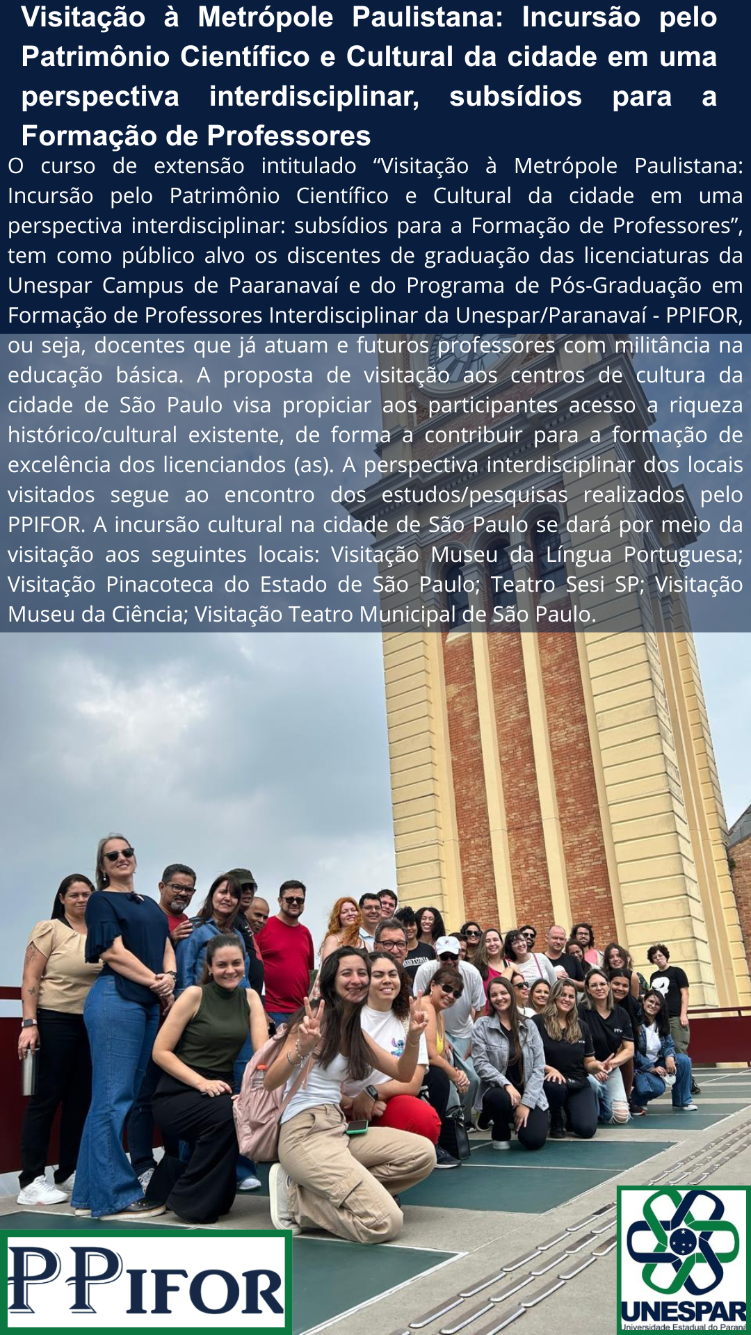 - Visitação à Metrópole Paulistana: Incursão pelo Patrimônio Científico e Cultural da cidade em uma perspectiva interdisciplinar, subsídios para a Formação de Professores